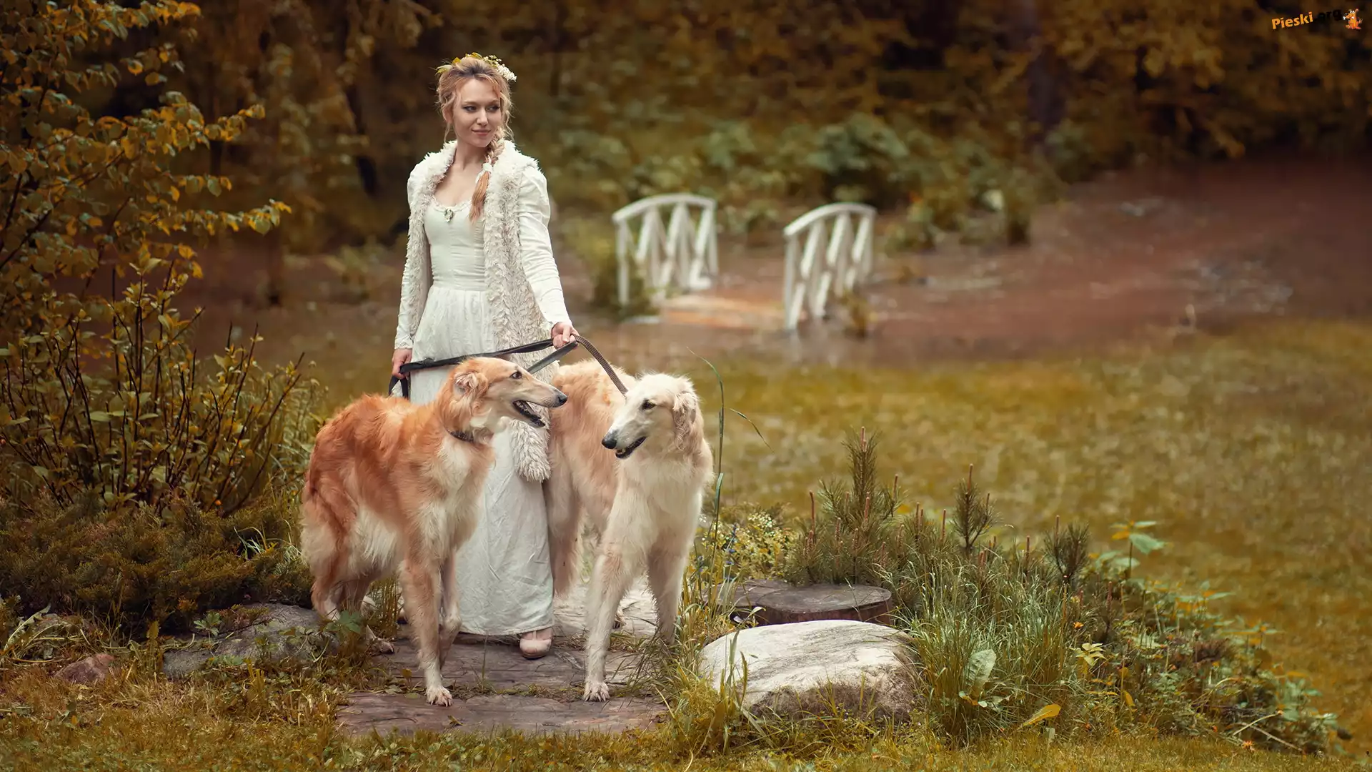 Pies, Chart rosyjski, Borzoj Psy, Blondynka, Kobieta, Dwa, Charty rosyjskie borzoj Rosyjski, Pies, Chart, Borzoj Borzoj, Kobieta, Pies, Chart rosyjski Charty, Rosyjskie