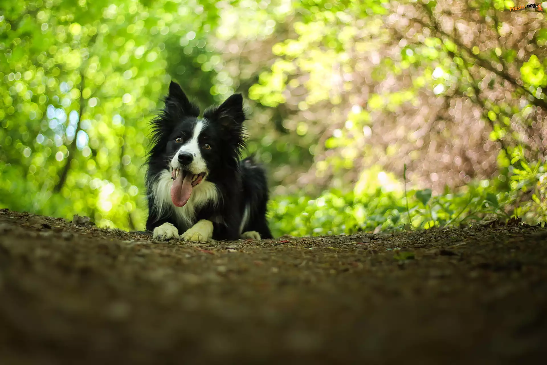 Border collie, Leżący, Pies, Bokeh