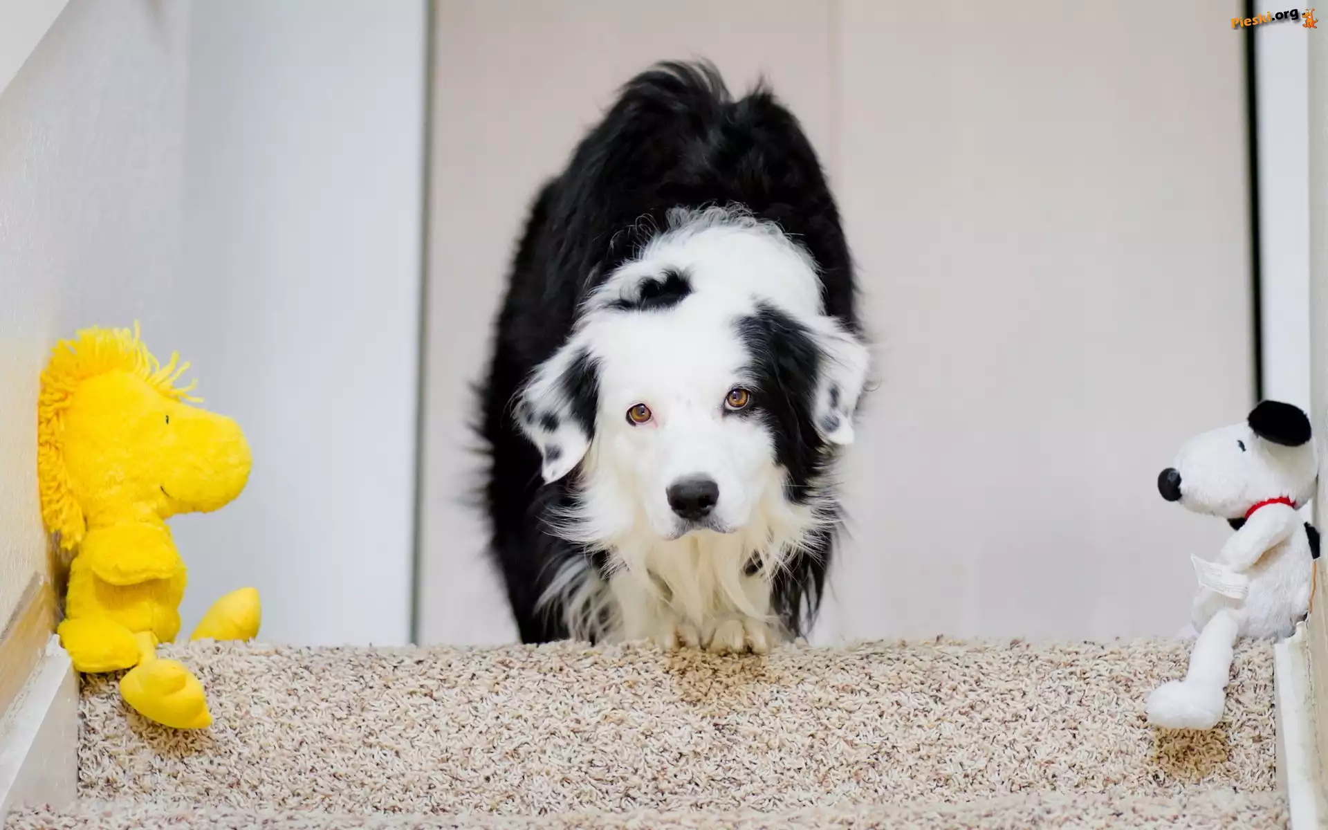 Border collie, Schody, Maskotki, Pieski