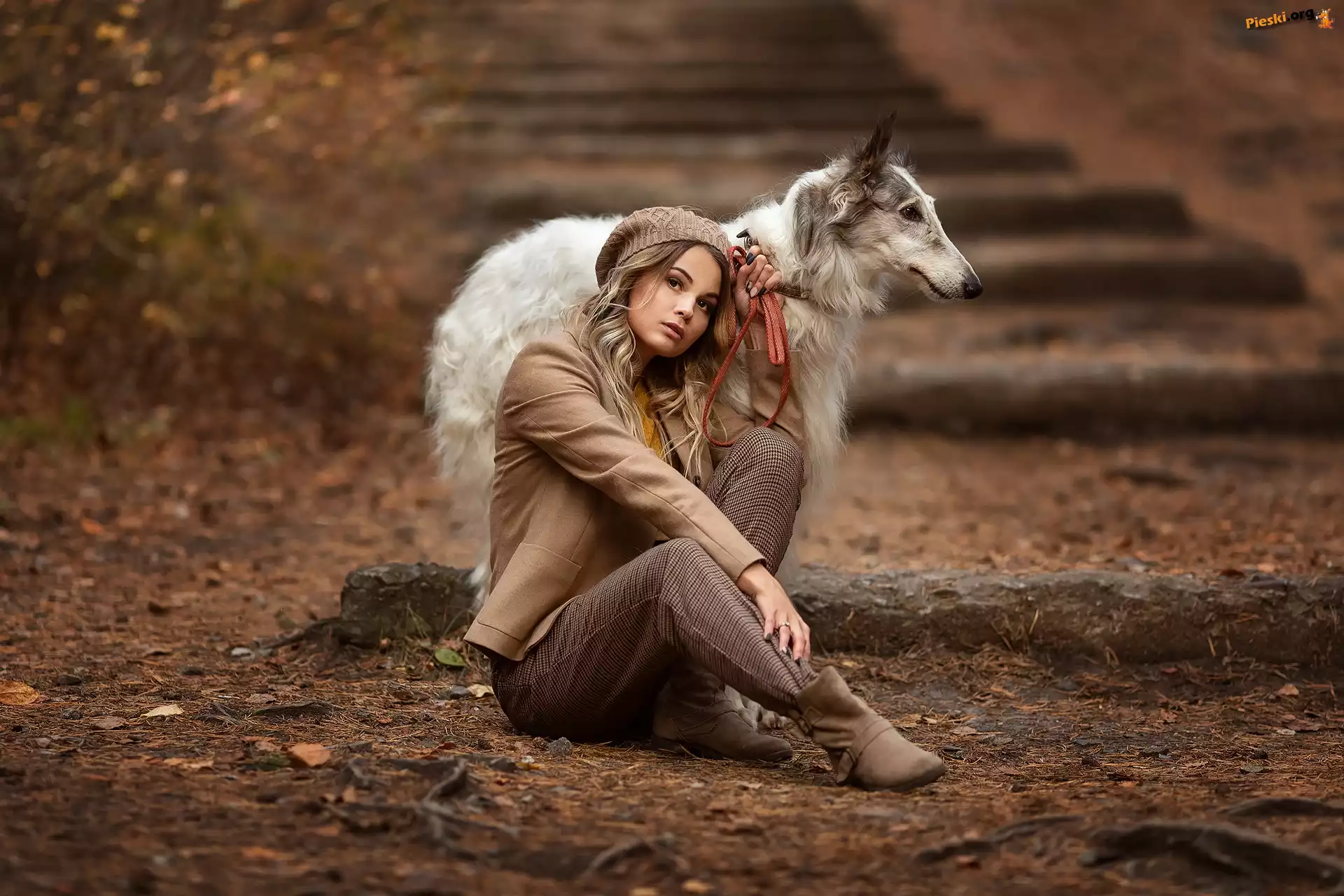 Pies, Chart rosyjski, Borzoj Psy, Blondynka, Kobieta, Dwa, Charty rosyjskie borzoj Rosyjski, Pies, Chart, Borzoj Borzoj, Kobieta, Pies, Chart rosyjski Charty, Rosyjskie