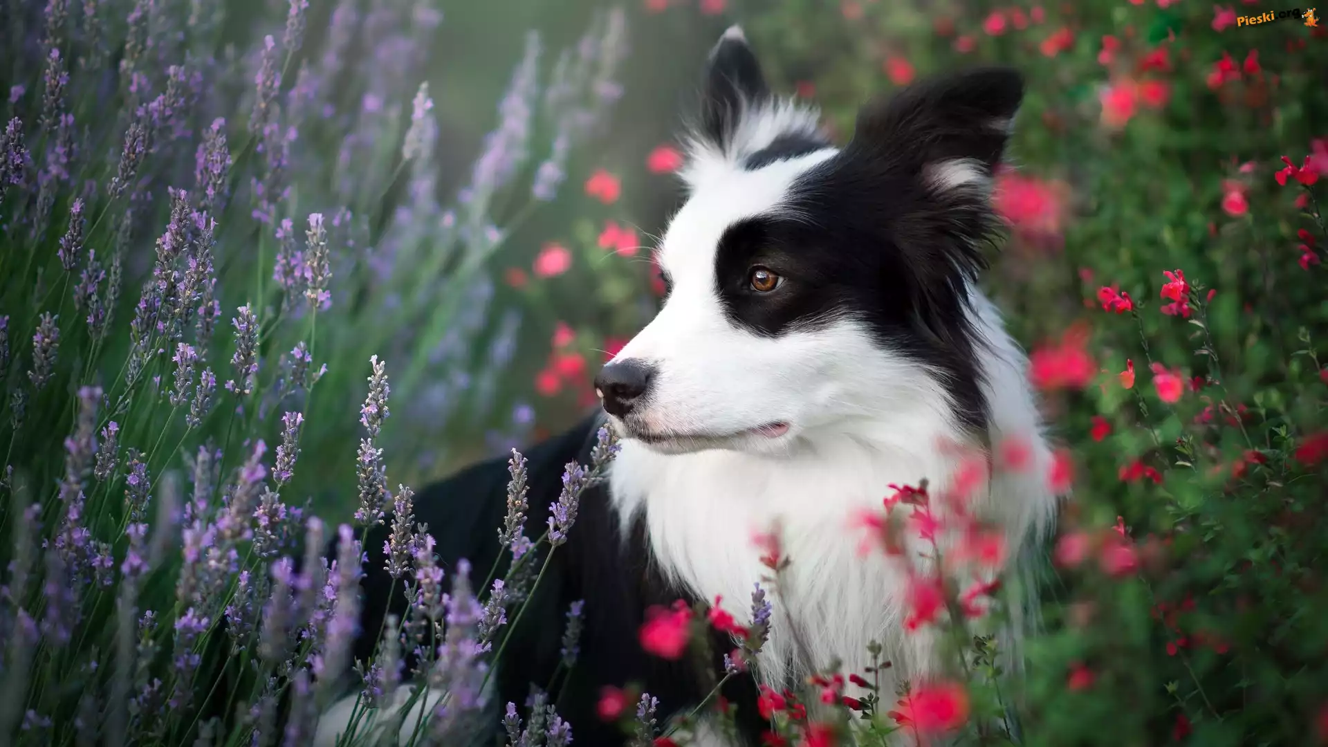 Łąka, Pies, Border collie, Kwiaty, Pieski