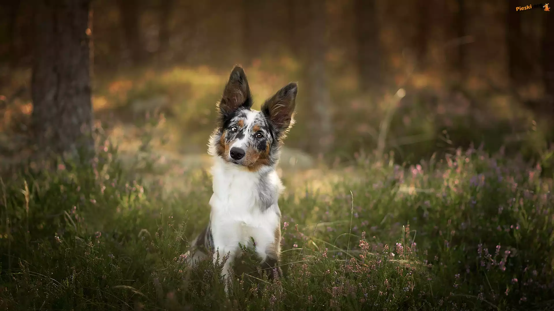 Drzewa, Pies, Border collie, Wrzos, Pieski