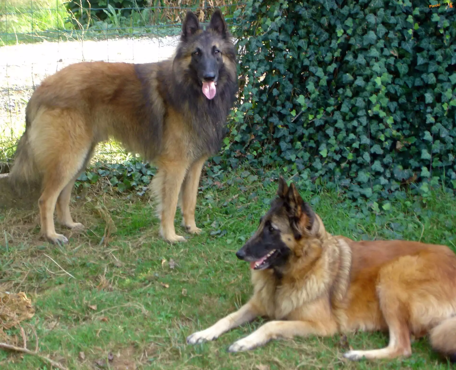 Dwa, duże, Owczarki belgijskie Tervueren, Pieski