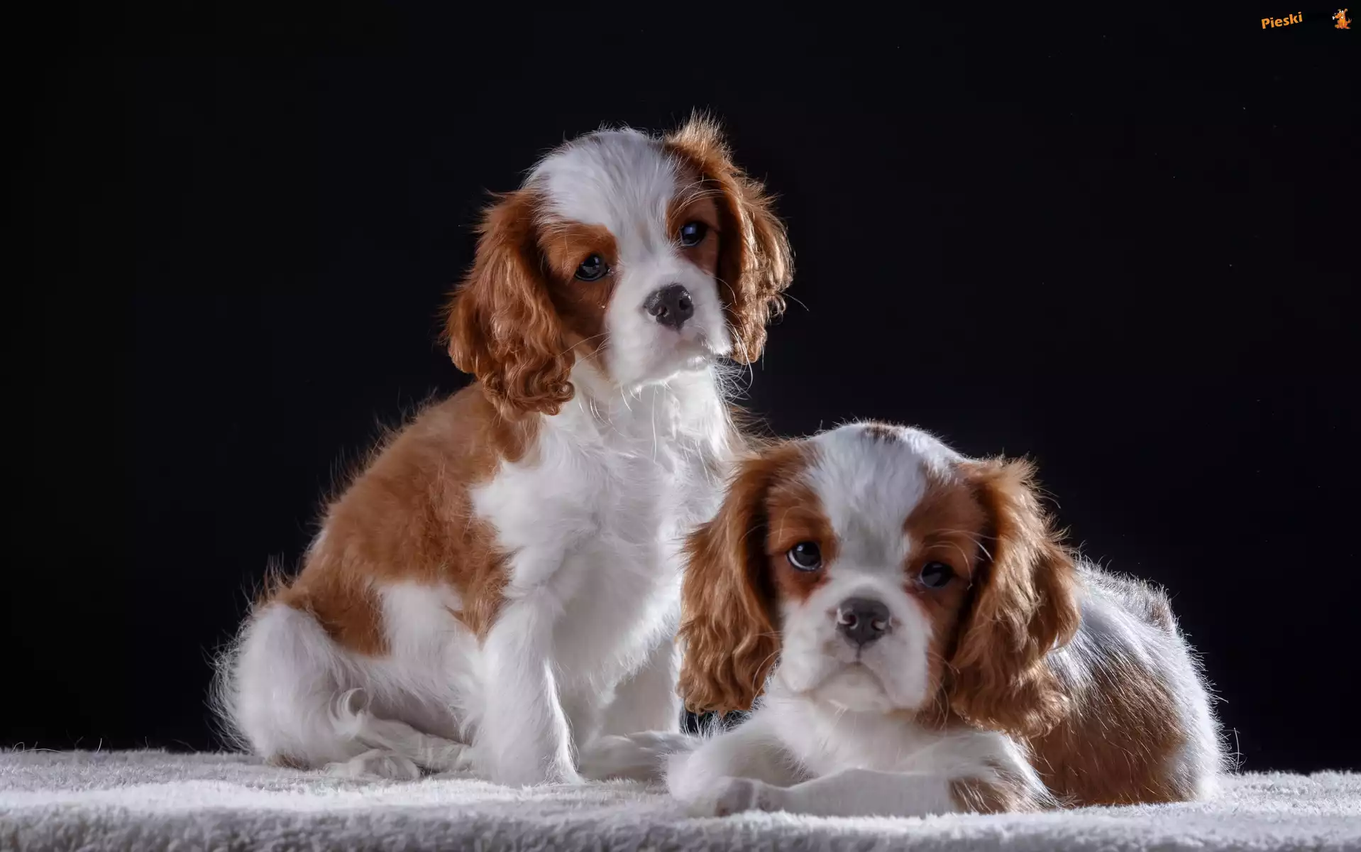 Dwa, Szczeniaki, Cavalier King Charles spaniele, Pieski
