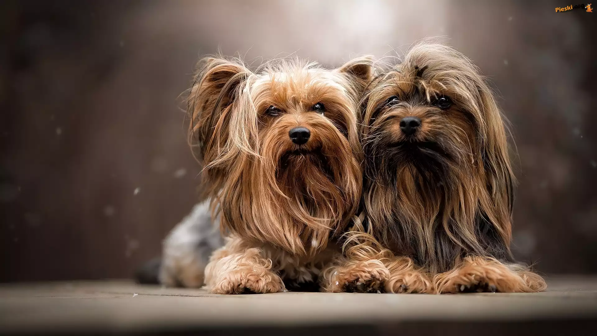 Rzeka, Yorkshire, Terier, Płynie czerwone, dwa, Yorkshire Terriery, kokardki Biały, But, Pies, Czarno, Koc Yorkshire Terrier, Długa, Sierść Trzy, Yorki Młody, York, Róże Motor, Pies, Motocyklista, Okulary, Skóra Yorkshire, Terrier, Kokardka Yorkshire Terrier,