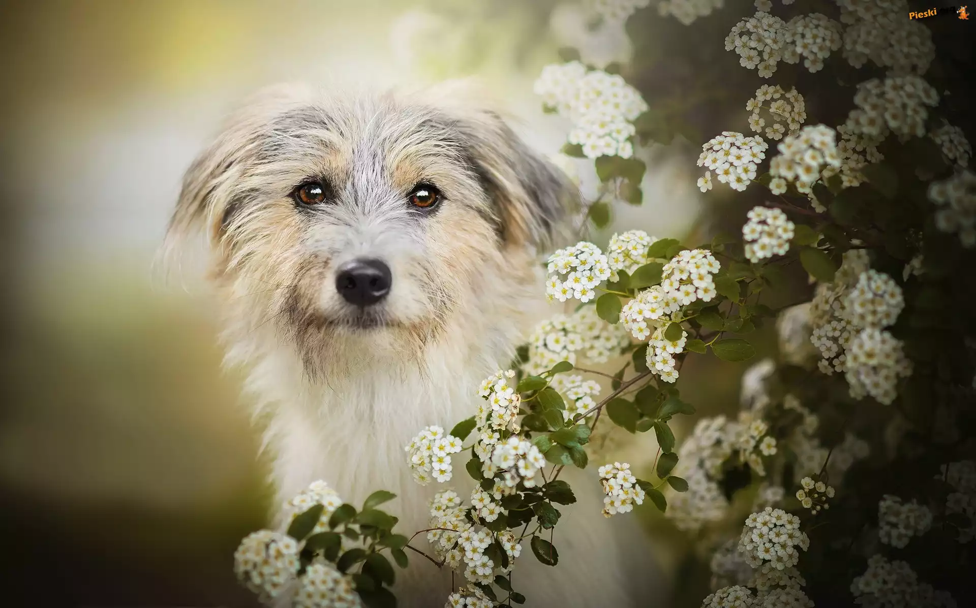 Gałązki, Pies, Kwiaty, Tawuła, Pieski