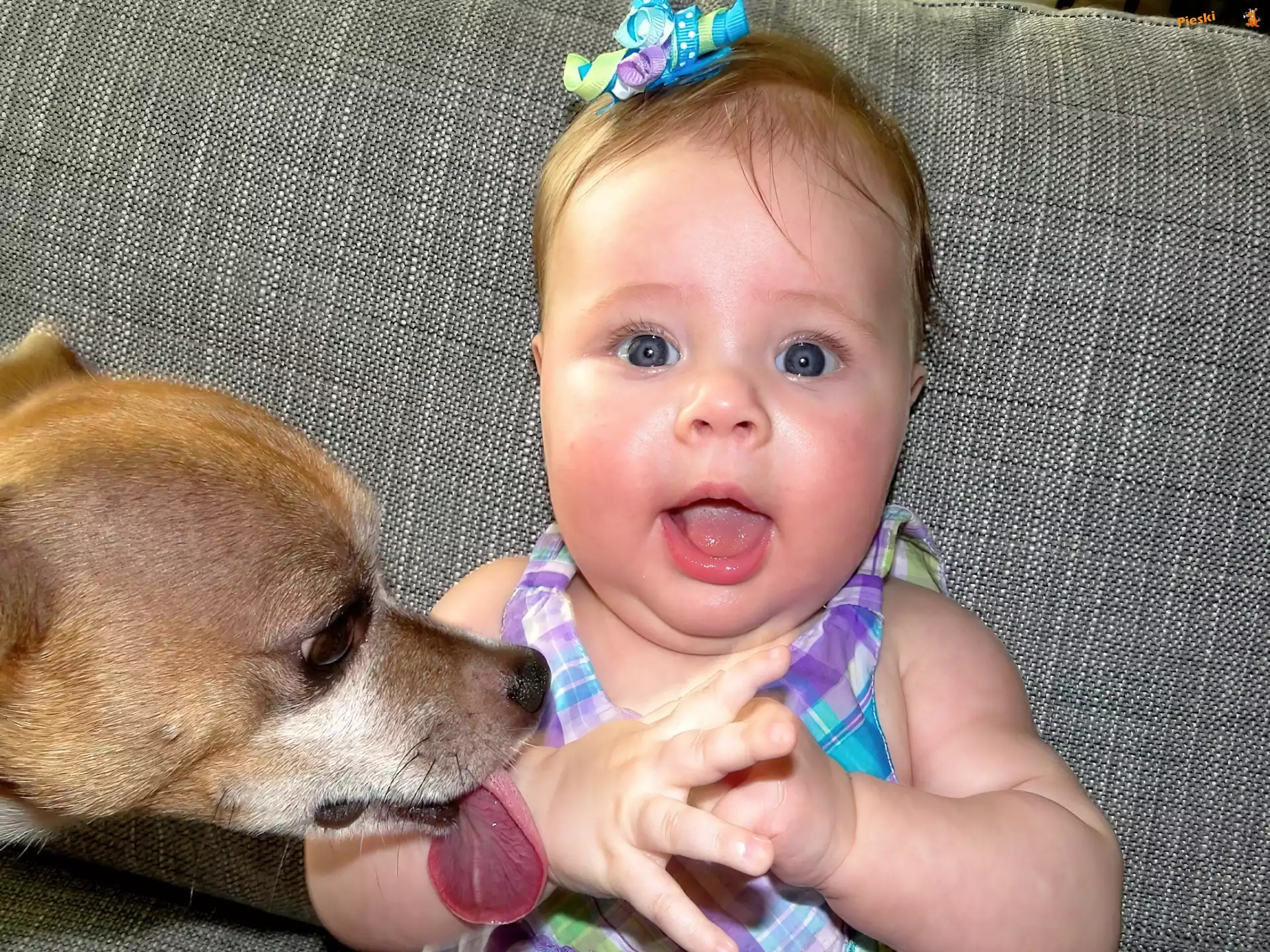 Głowa, Dziewczynka, Malutka, Piesek, Język