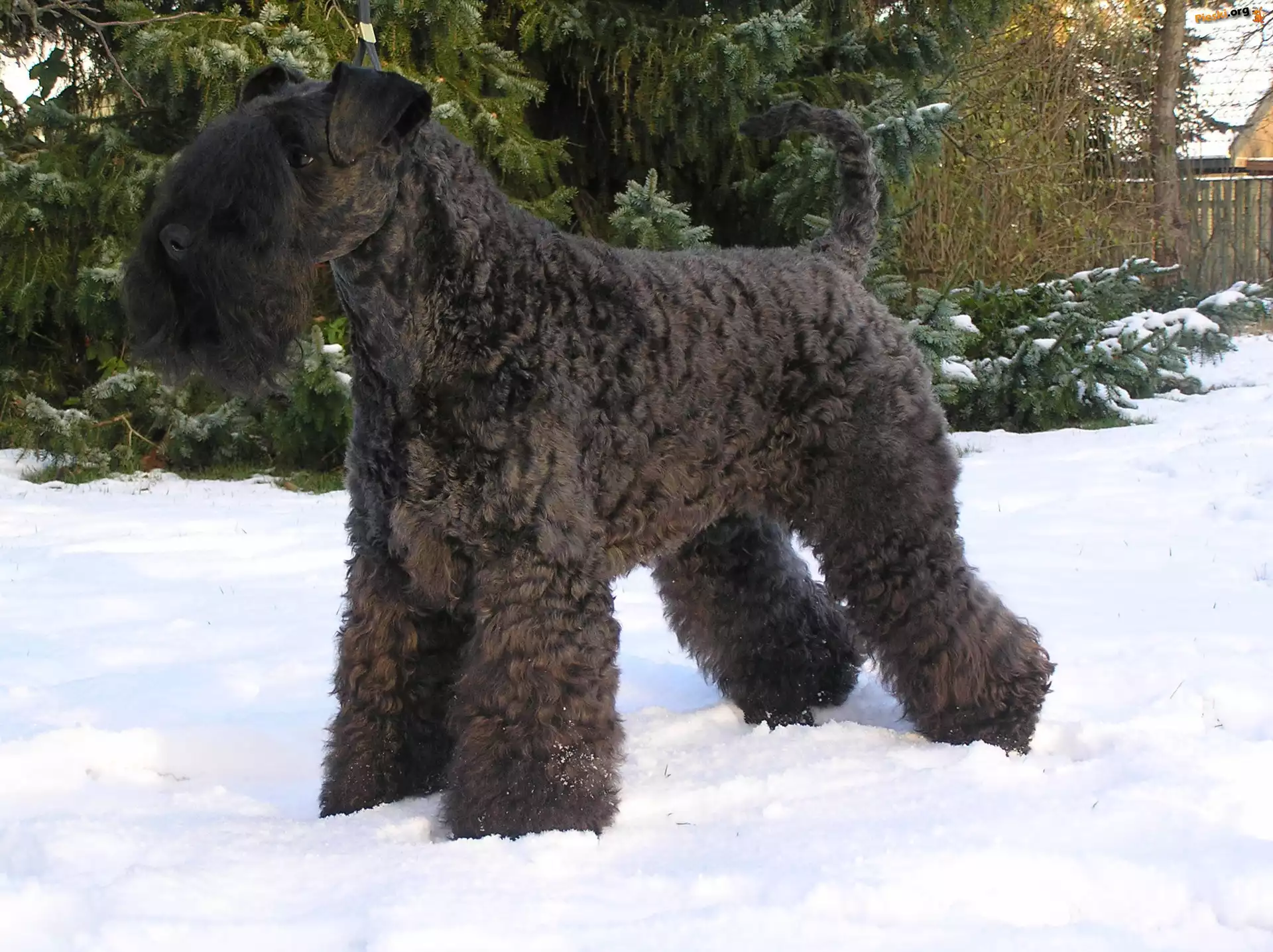 Kerry blue terrier, śnieg trzy, Kerry blue terrier Kerry blue terrier