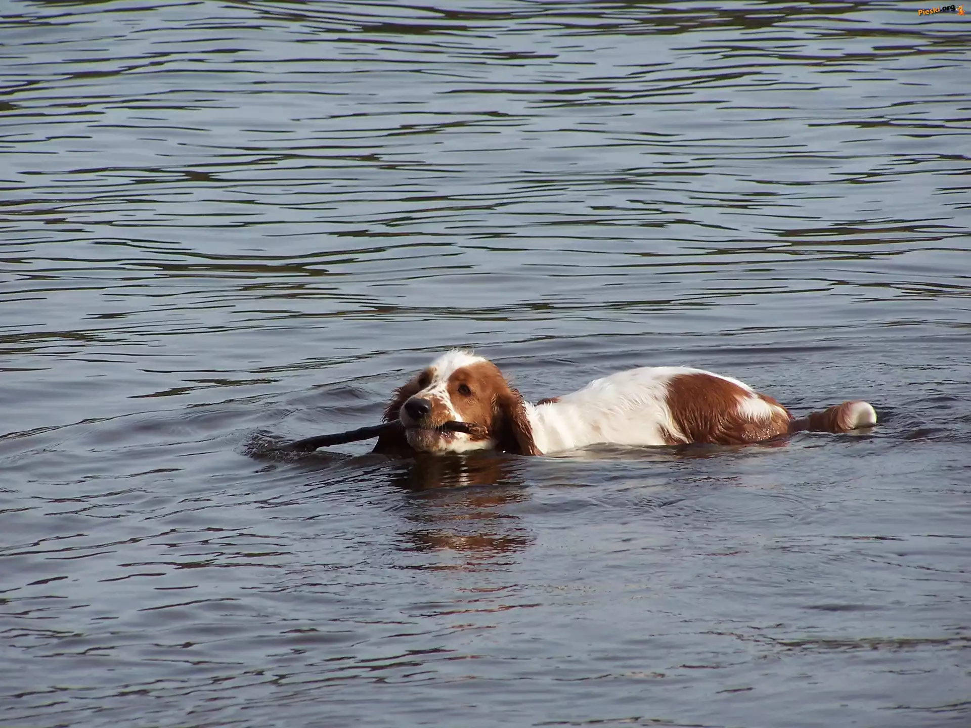 kij, płynący, Springer spaniel walijski, woda, Pieski