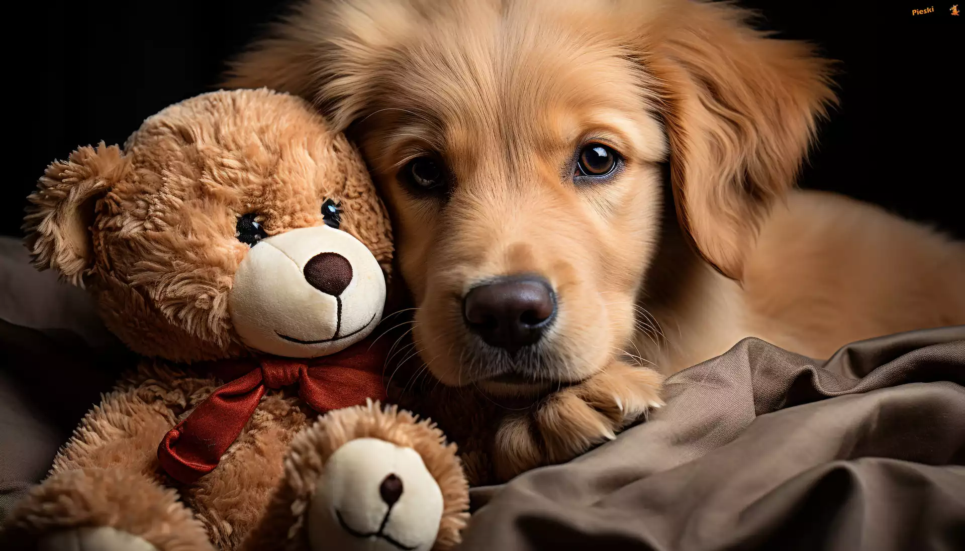 Pluszowy, Kokarda, Pies, Miś, Szczeniak
