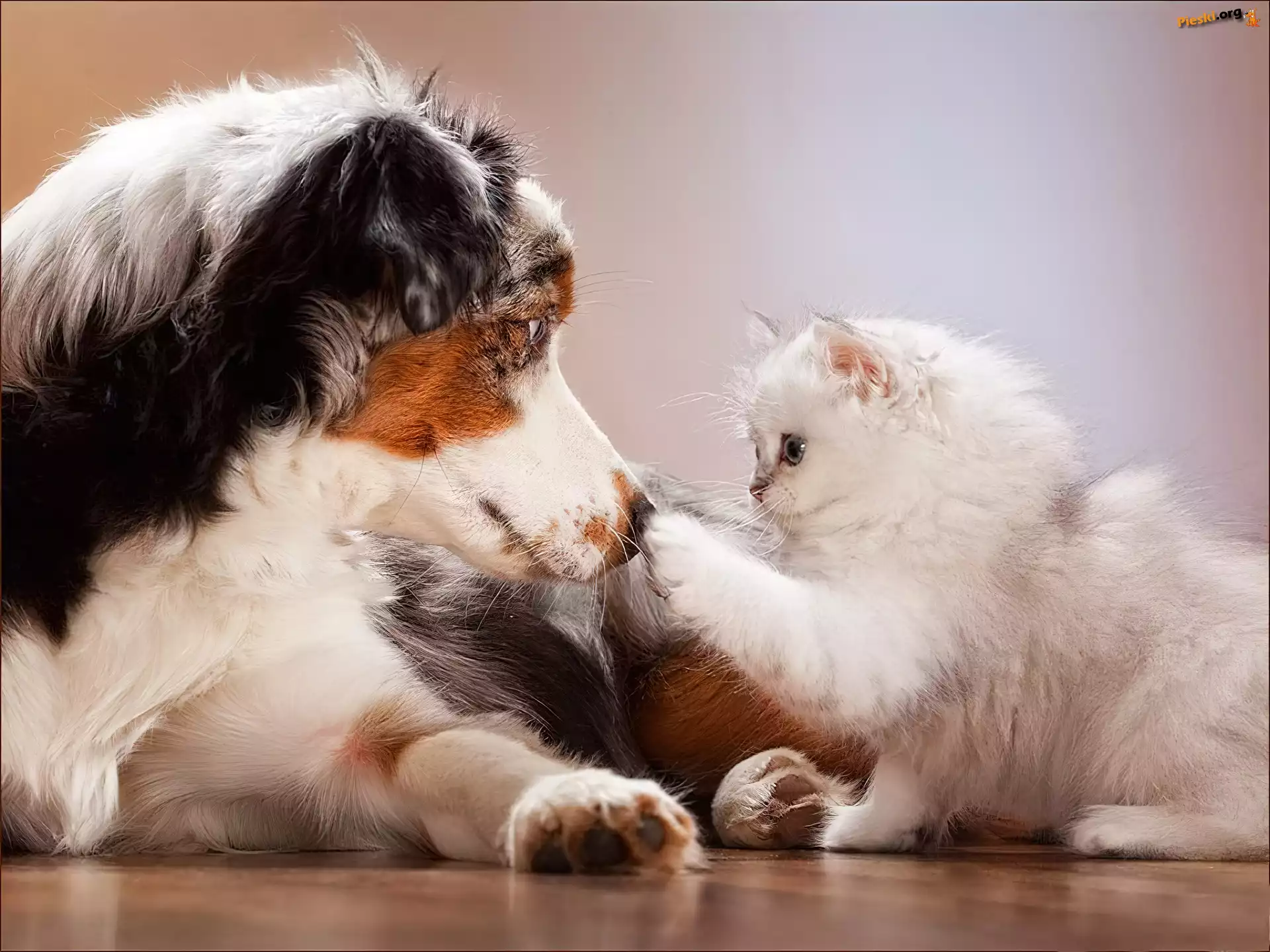 Owczarek australijski-australian shepherd, Pies, Kot, Pieski