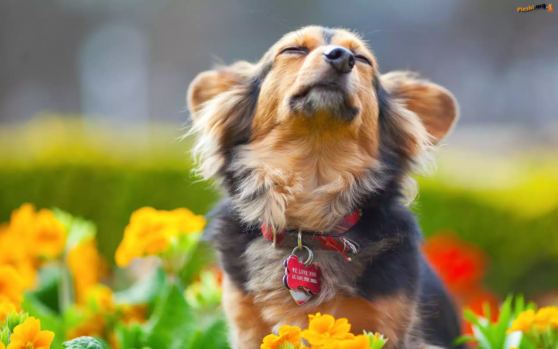 Rozmarzony, Kundelek, Kwiaty, Pieski