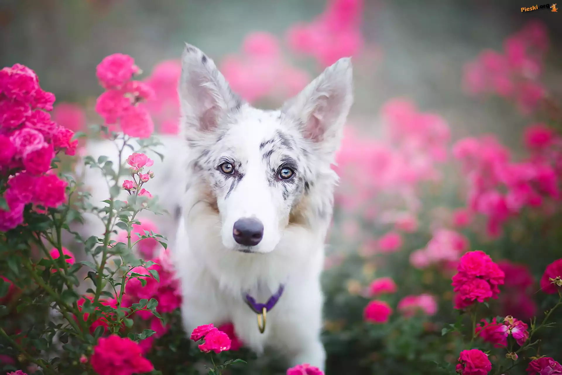 Kwiaty, Border collie, Portret, Róże, Pieski