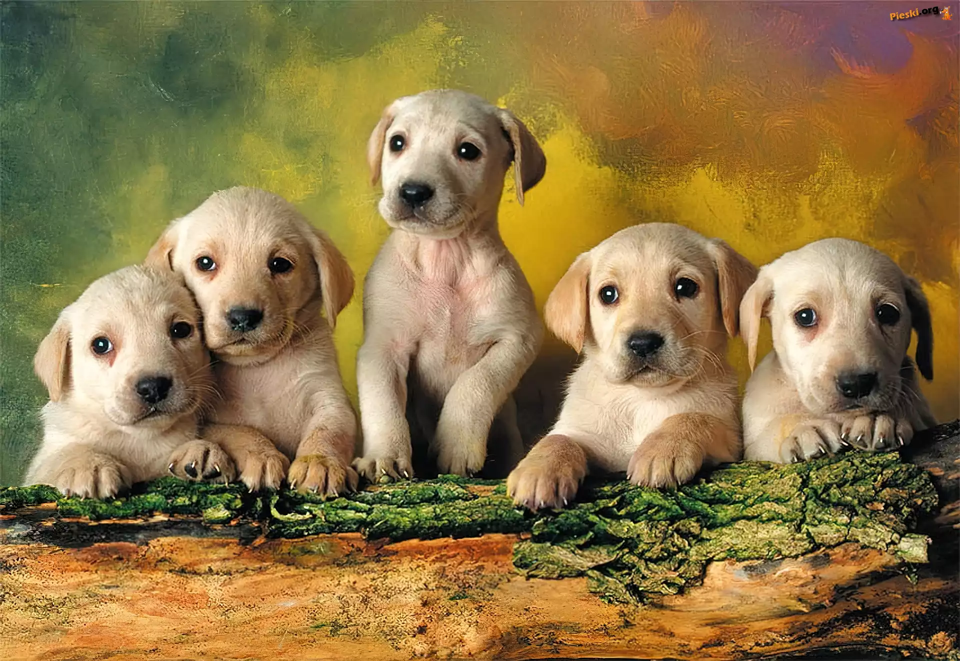 Labradorów, Pięć, Małych, Drzewo, Pieski