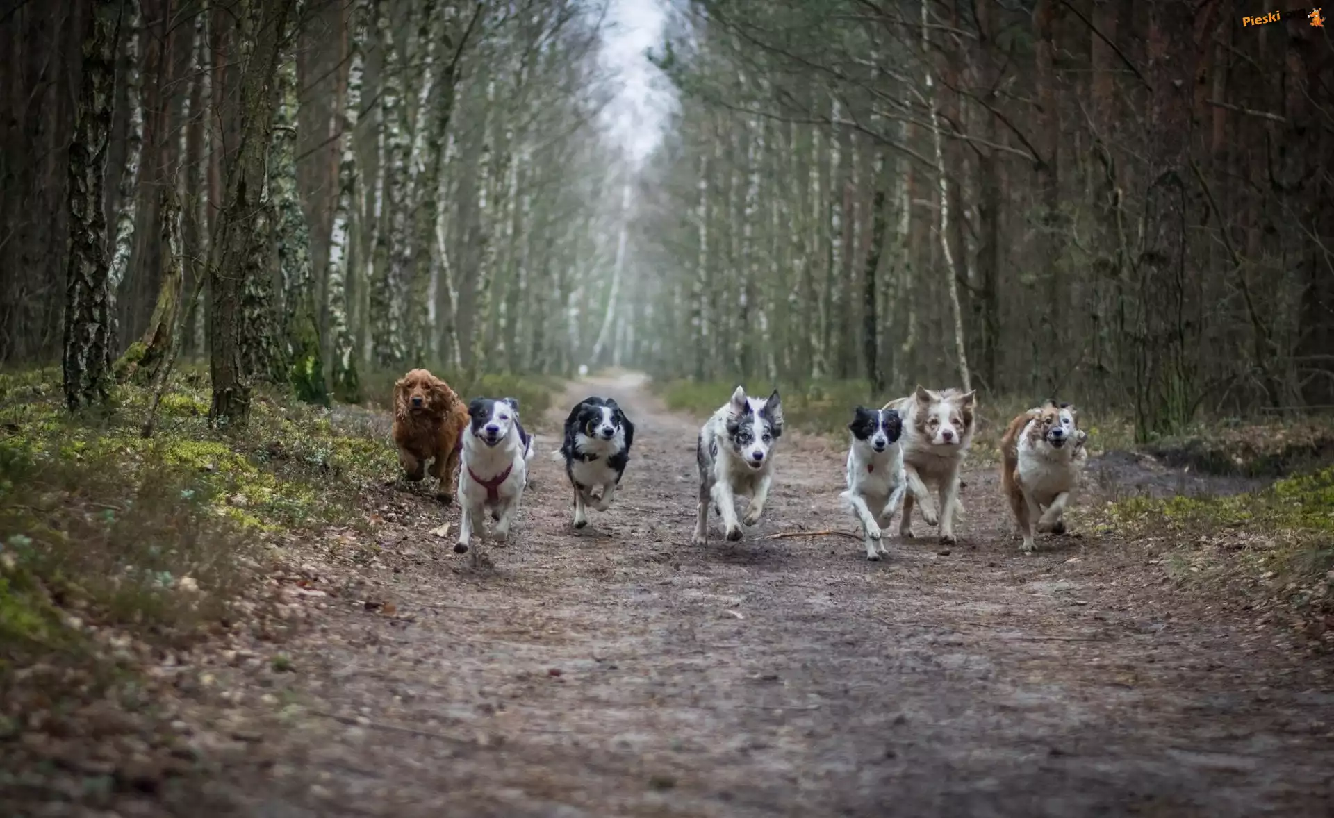 Dalmatyczyk, Szczeniak, Wiaderko Piesek, Gowa Obroa, Pies, Buldog, Jzyk Oczy, Woda, Pies, Niebieski, Owczarek australijski-australian shepherd Dwa, Siberian Husky Dwa, Pieski, ka Trawa, Mops Sze, Border collie, Owczarki belgijskie tervueren, Psw, Trzy, Owczarek szetlandzki Chesapeake Bay retriever, niebieska, woda