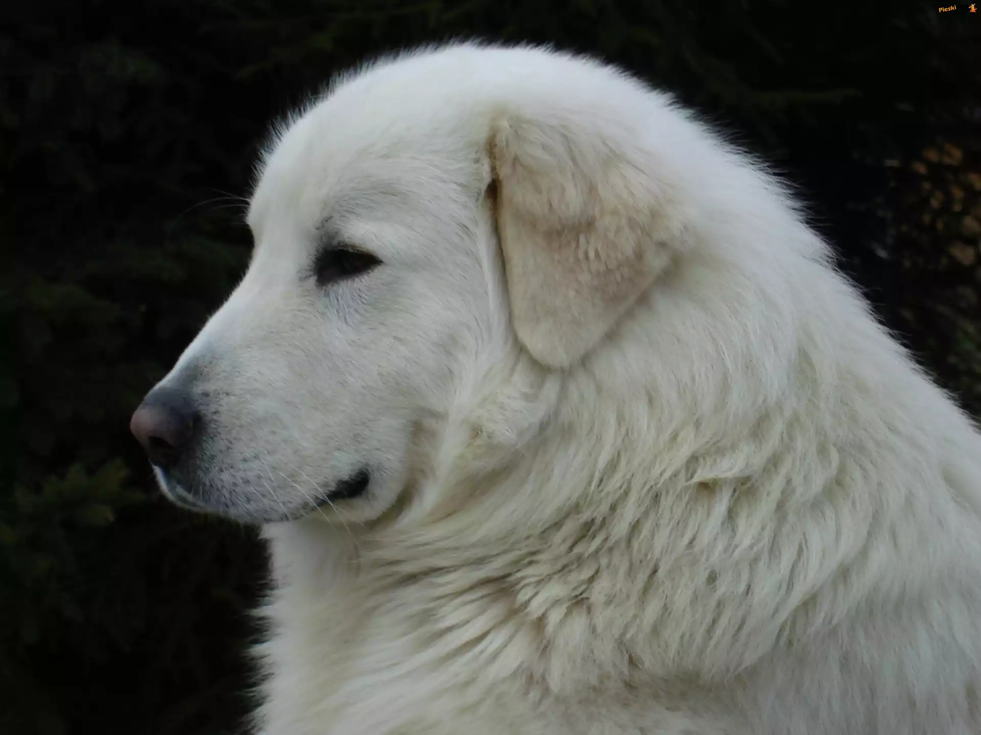 głowa, Maremmano-abruzzese czerwone, Maremmano-abruzzese, donica, kwiatki Krawężnik, Biały, Piesek, Maremmano-abruzzese szczeniak, Maremmano-abruzzese Maremmano-abruzzese, plaża
