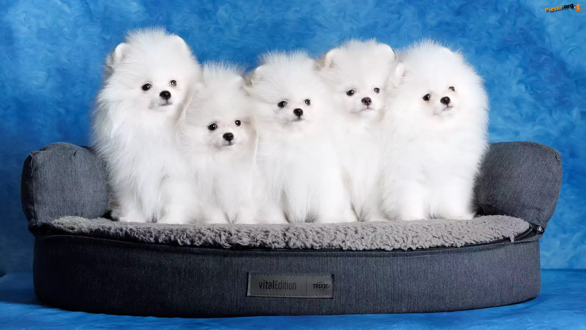 Szpice miniaturowe, Białe, Psy, Szczenięta