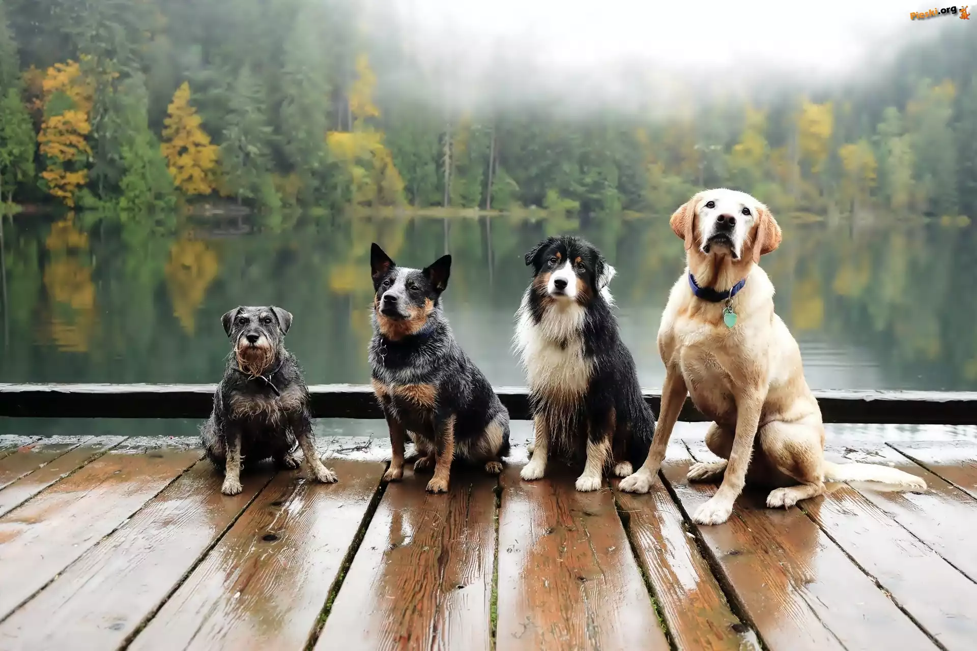 Dalmatyczyk, Szczeniak, Wiaderko Piesek, Gowa Obroa, Pies, Buldog, Jzyk Oczy, Woda, Pies, Niebieski, Owczarek australijski-australian shepherd Dwa, Siberian Husky Dwa, Pieski, ka Trawa, Mops Sze, Border collie, Owczarki belgijskie tervueren, Psw, Trzy, Owczarek szetlandzki Chesapeake Bay retriever, niebieska, woda