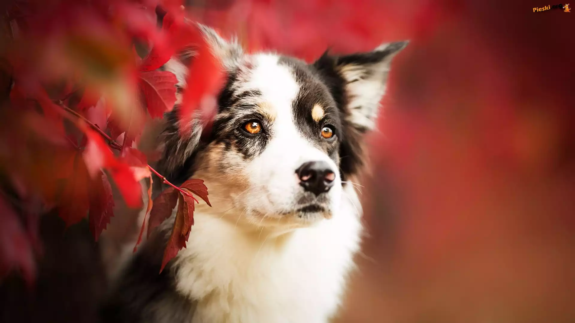 Mordka, Opis: Pies, Owczarek australijski, Liście, Pieski