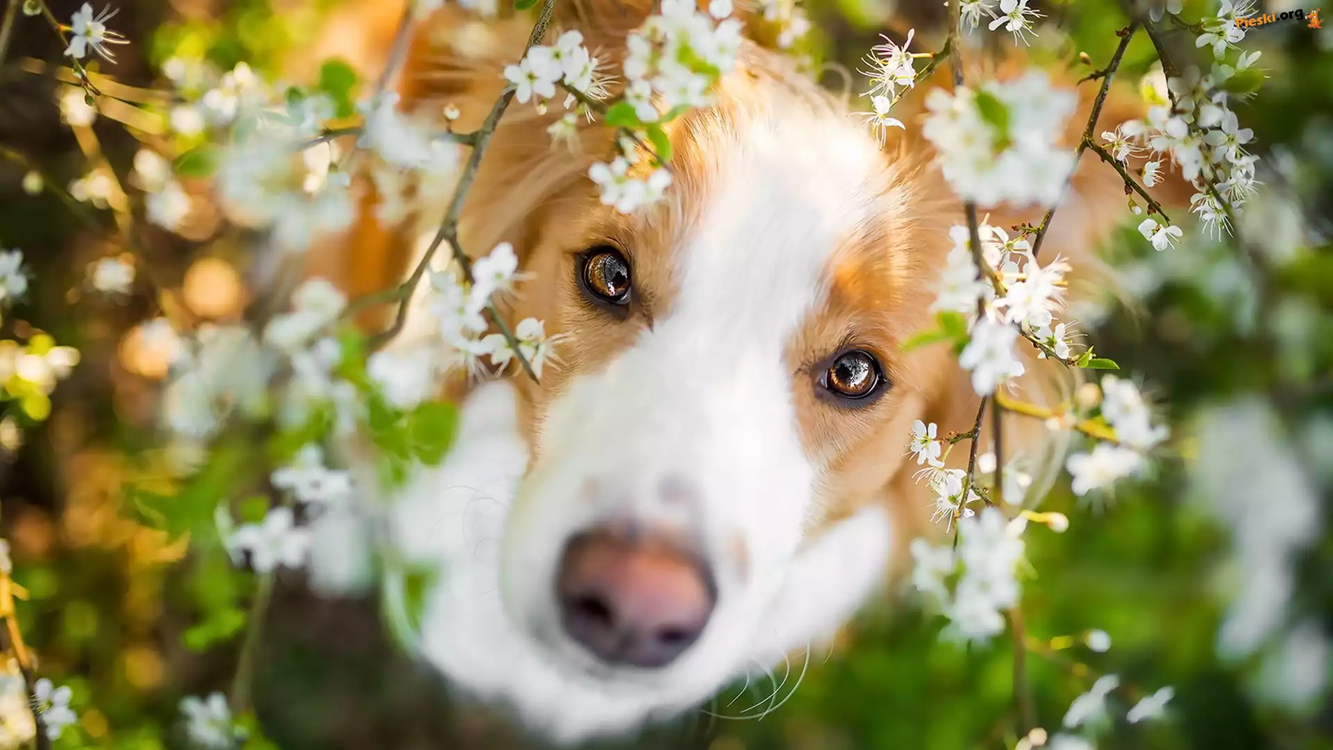 Mordka, Pies, Border collie, Kwiaty, Pieski