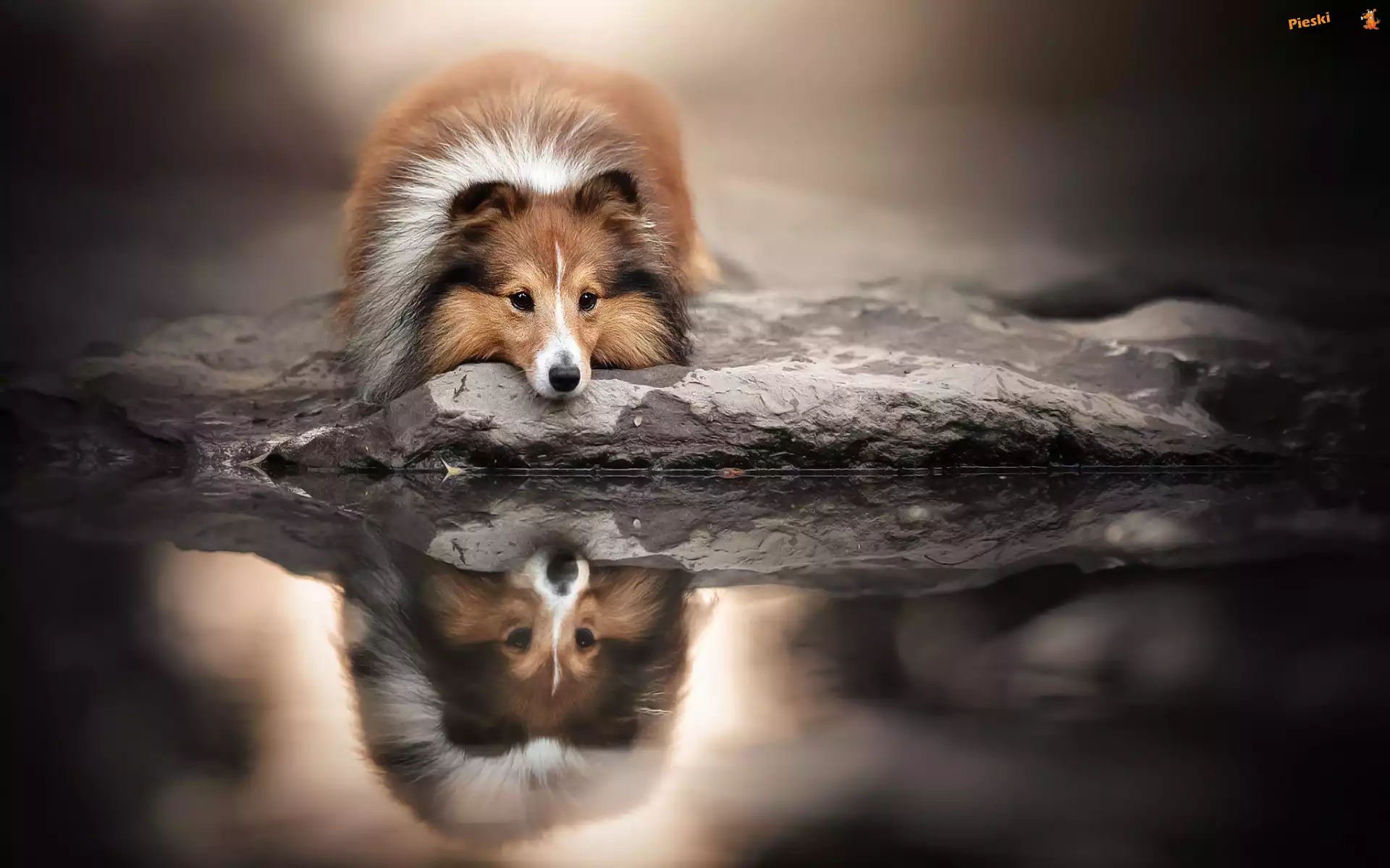 Odbicie, Pies, Woda, Owczarek szetlandzki, Pieski
