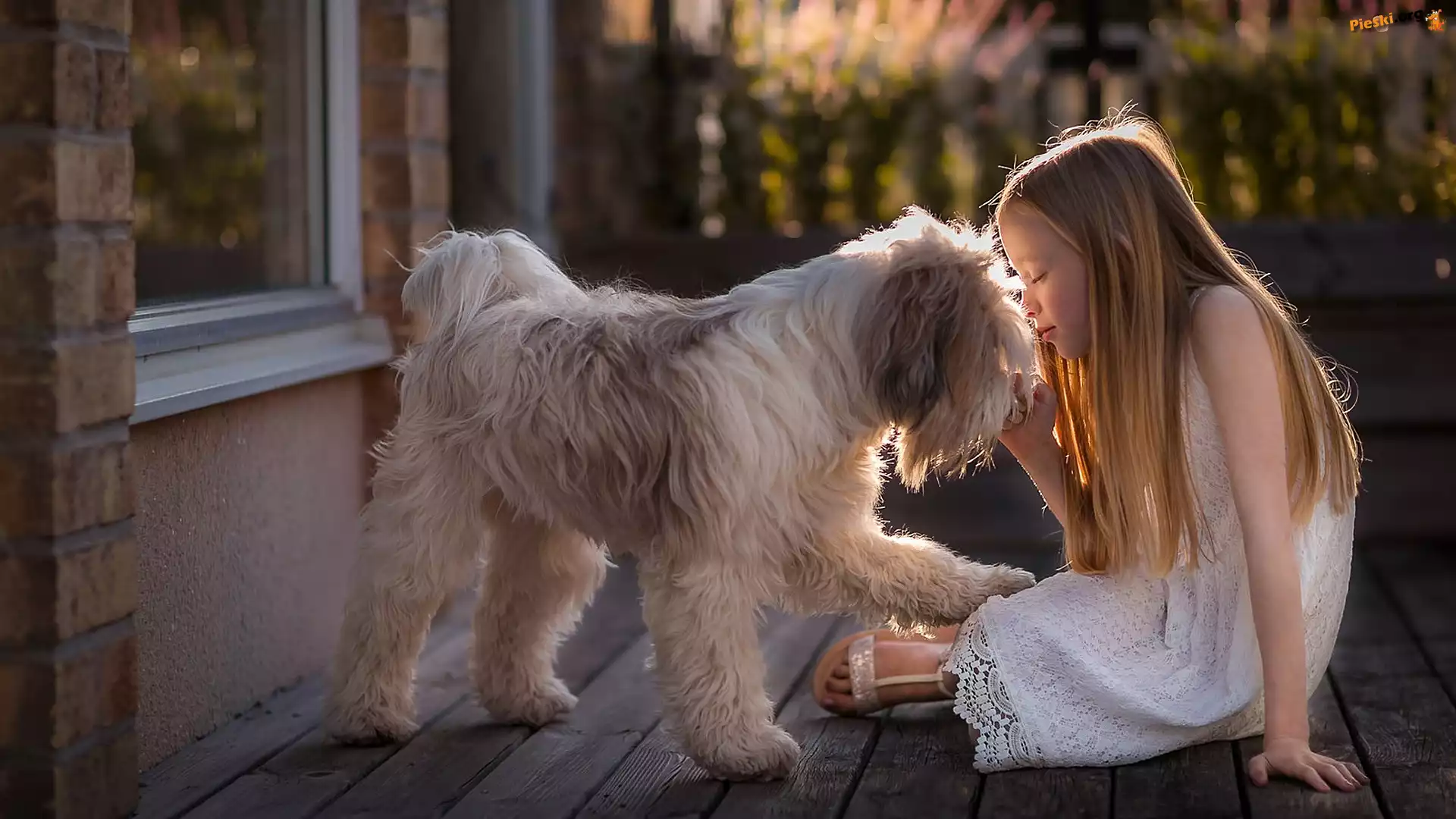 Okno, Terier tybetański, Pies, Dziewczynka, Taras, Pieski