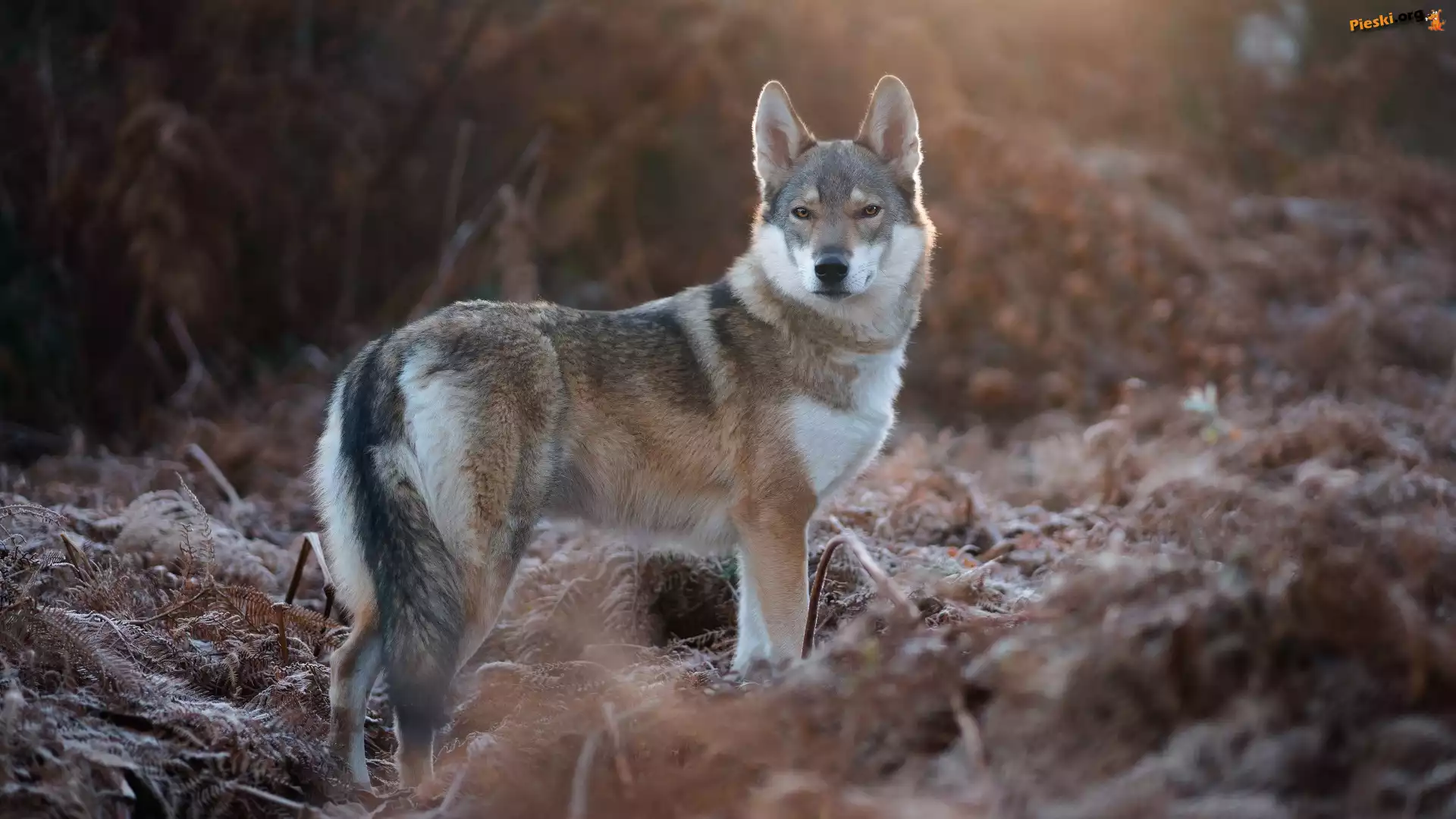 Oszronione, Pies, Owczarek niemiecki, Rośliny, Pieski