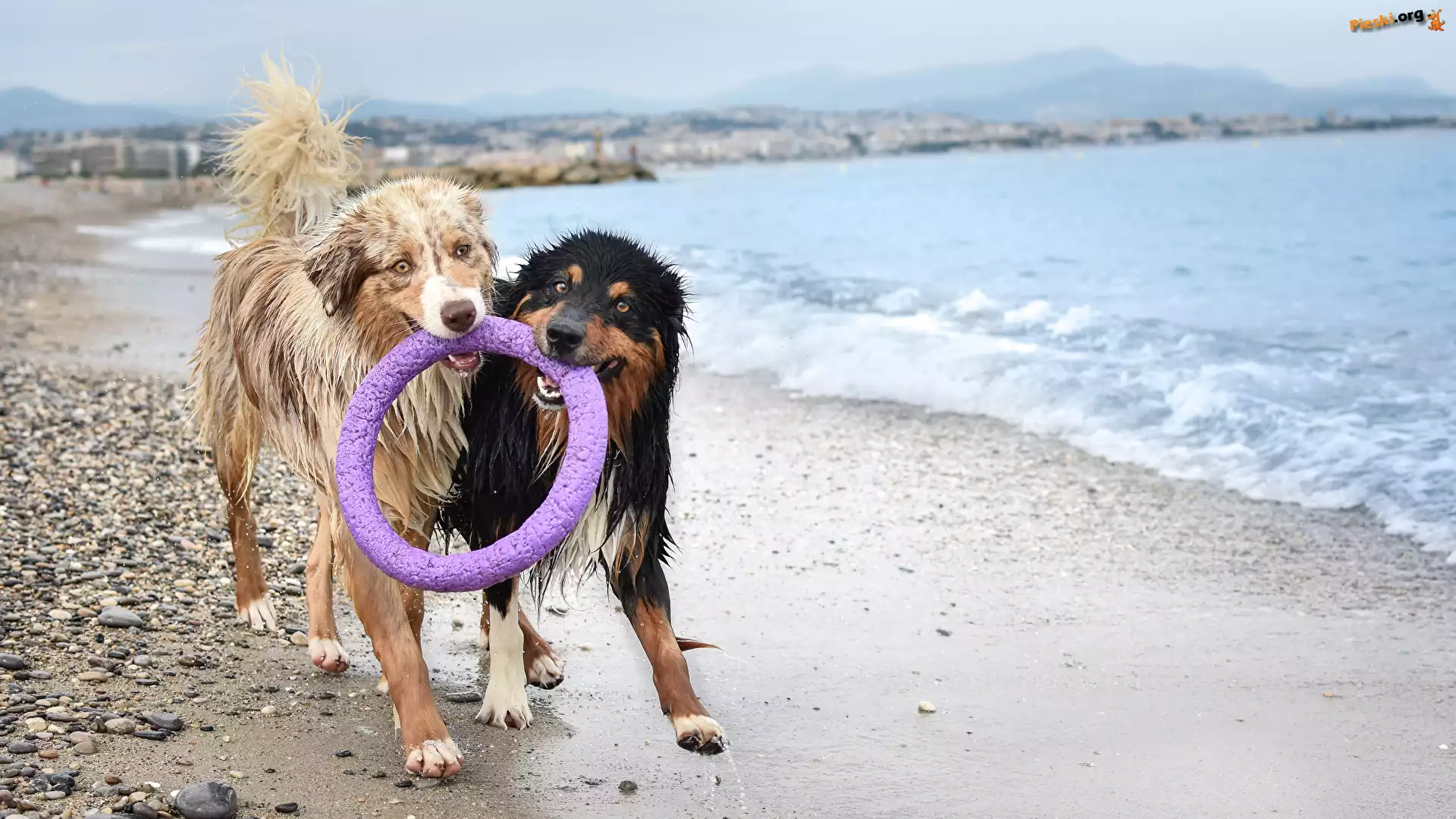 Owczarki australijskie, Mokre, Dwa, Psy, Kółko