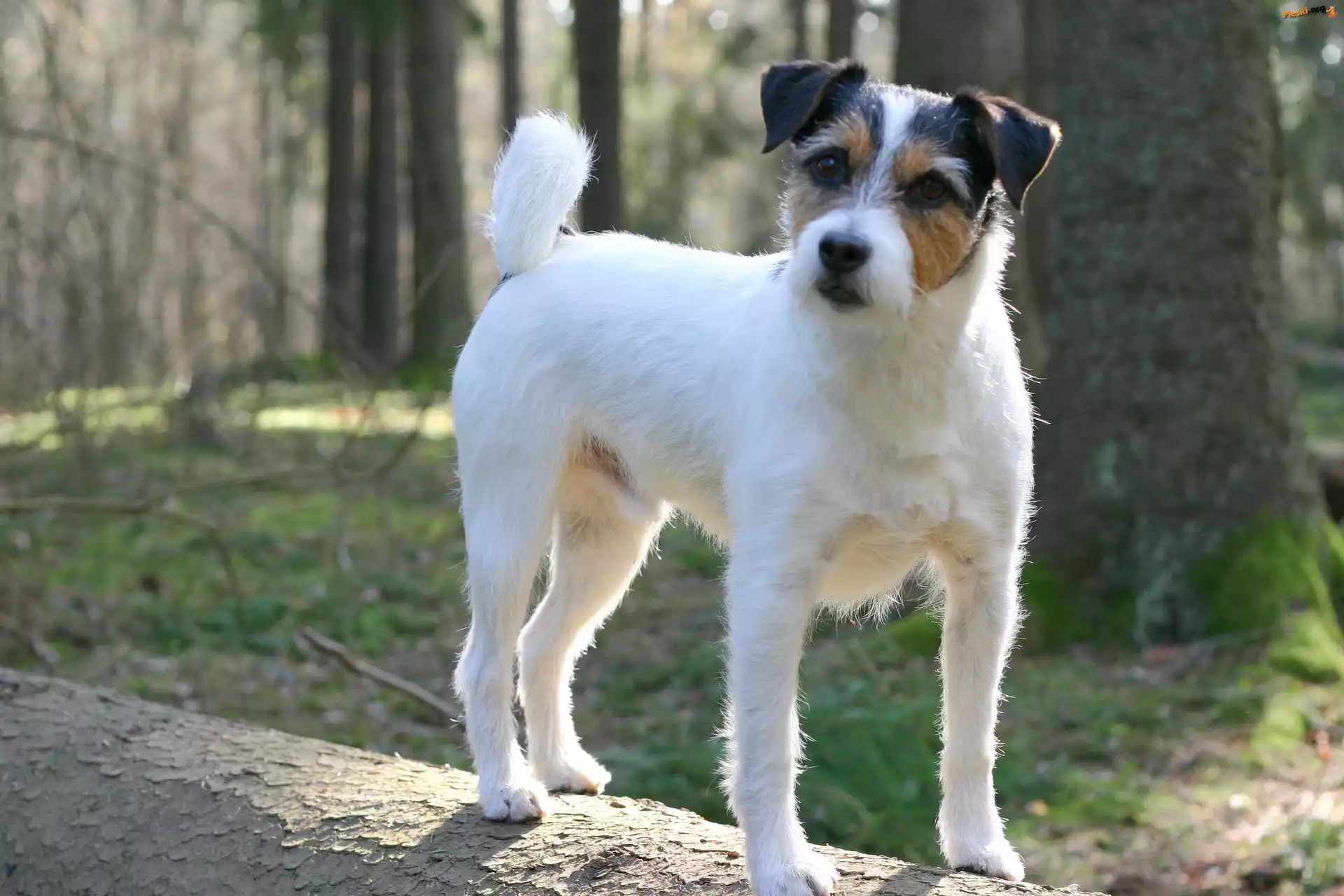 Parson Russell Terrier, Las Polana, Chłopiec, Mały, Szczeniaczek, Las głowa, Parson Russell Terriera Domy, Ubranko, Parson Russell Terrier Parson Russell Terrier, most