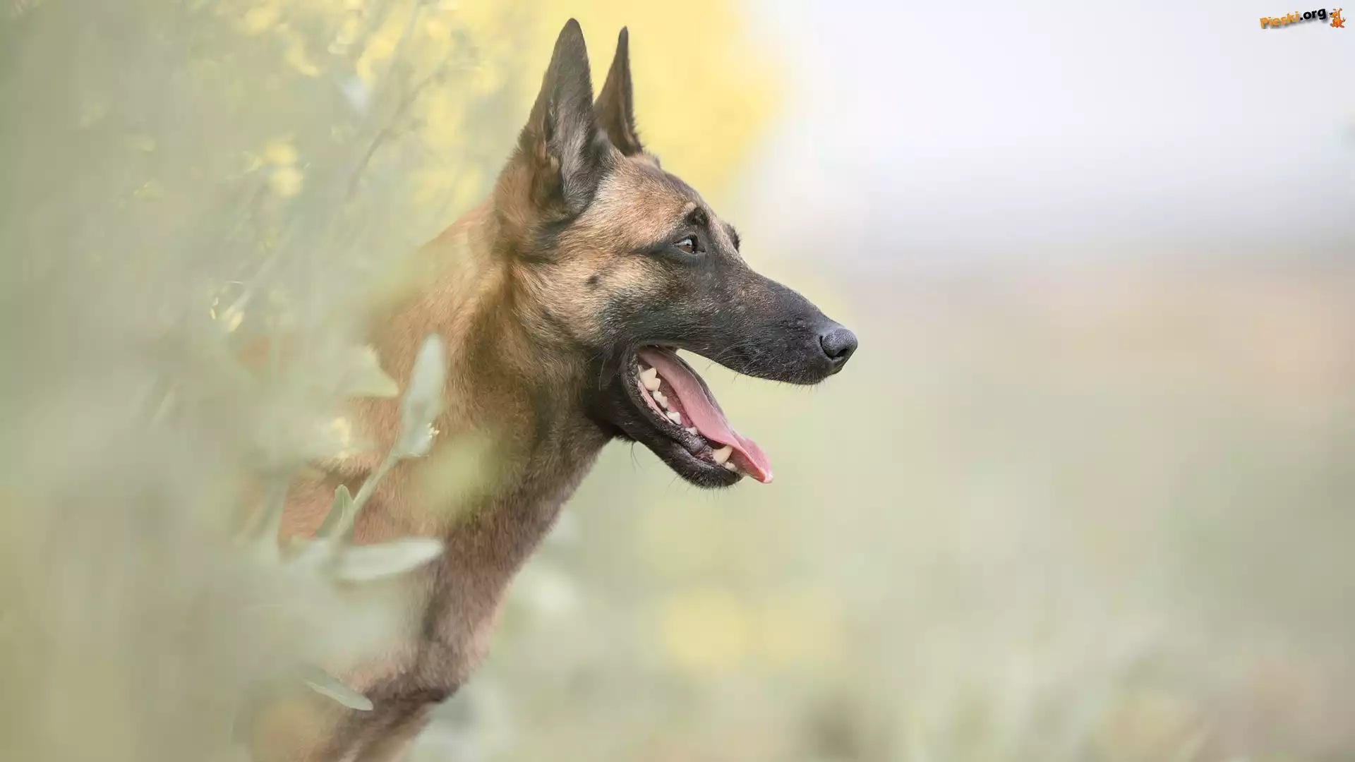 Ptak, Syczek zwyczajny, Pies, Sowa, Owczarek belgijski Malinois Pies, Owczarek belgijski malinois, Dziecko Owczarek belgijski Malinois, drzewo Wrzosy, Pies, Rozmyte, Mordka, Owczarek belgijski malinois, Jęzor, Tło
