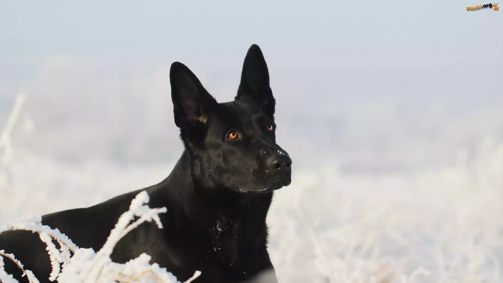 Pies, Czarny owczarek niemiecki, Śnieg, Pieski