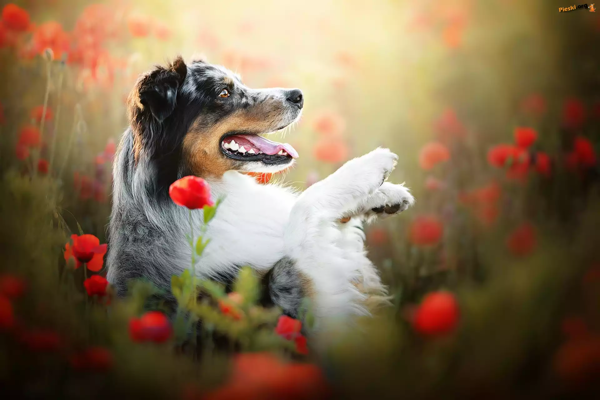 Profil, Pies, Owczarek australijski, Maki, Pieski