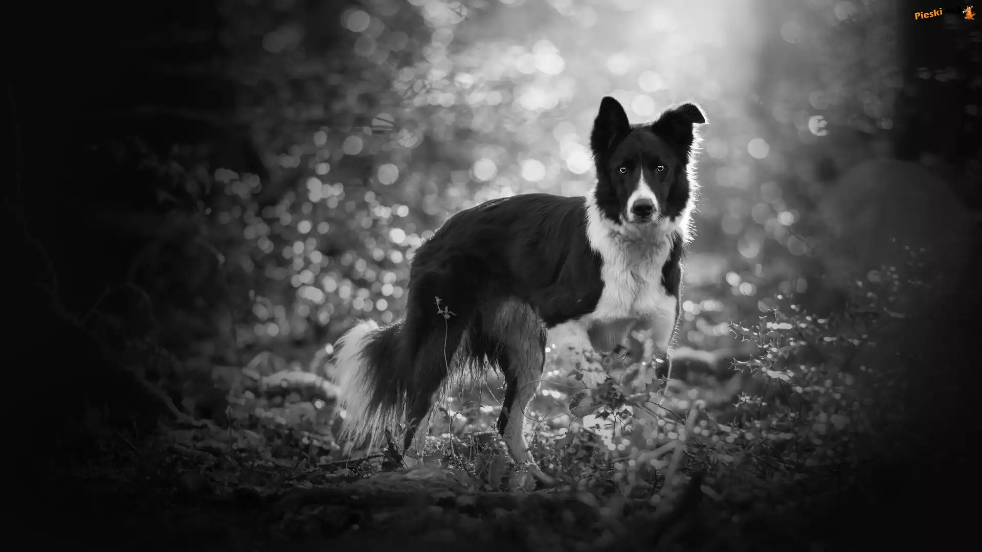 Rośliny, Pies, Border collie, Bokeh, Pieski