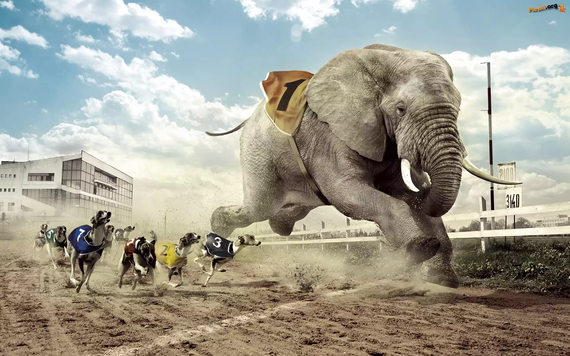 Słoń, Wyścigowy, Tor, Charty, Śmieszne