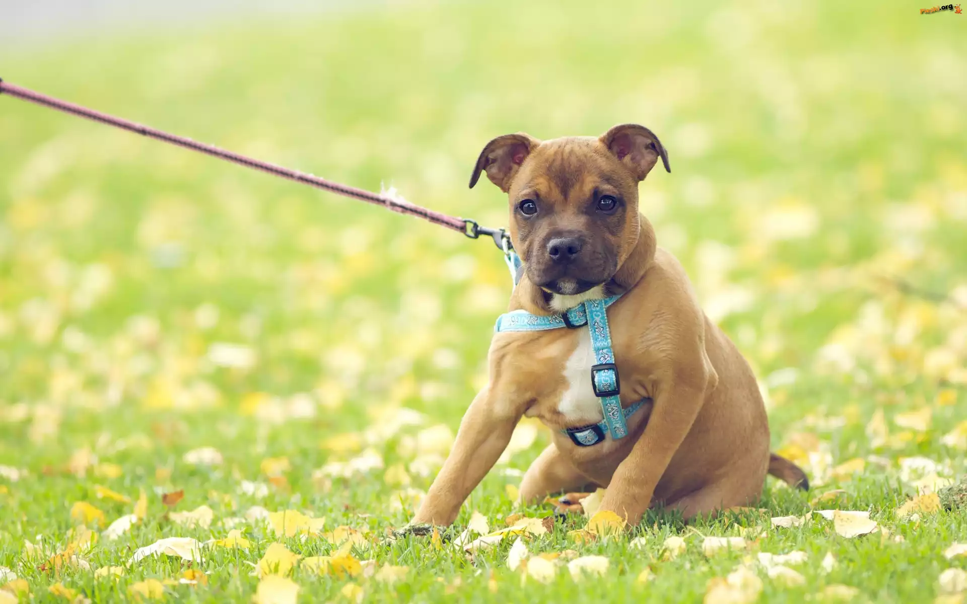 Łąka, Piesek, Szczeniak, Smycz, Pieski