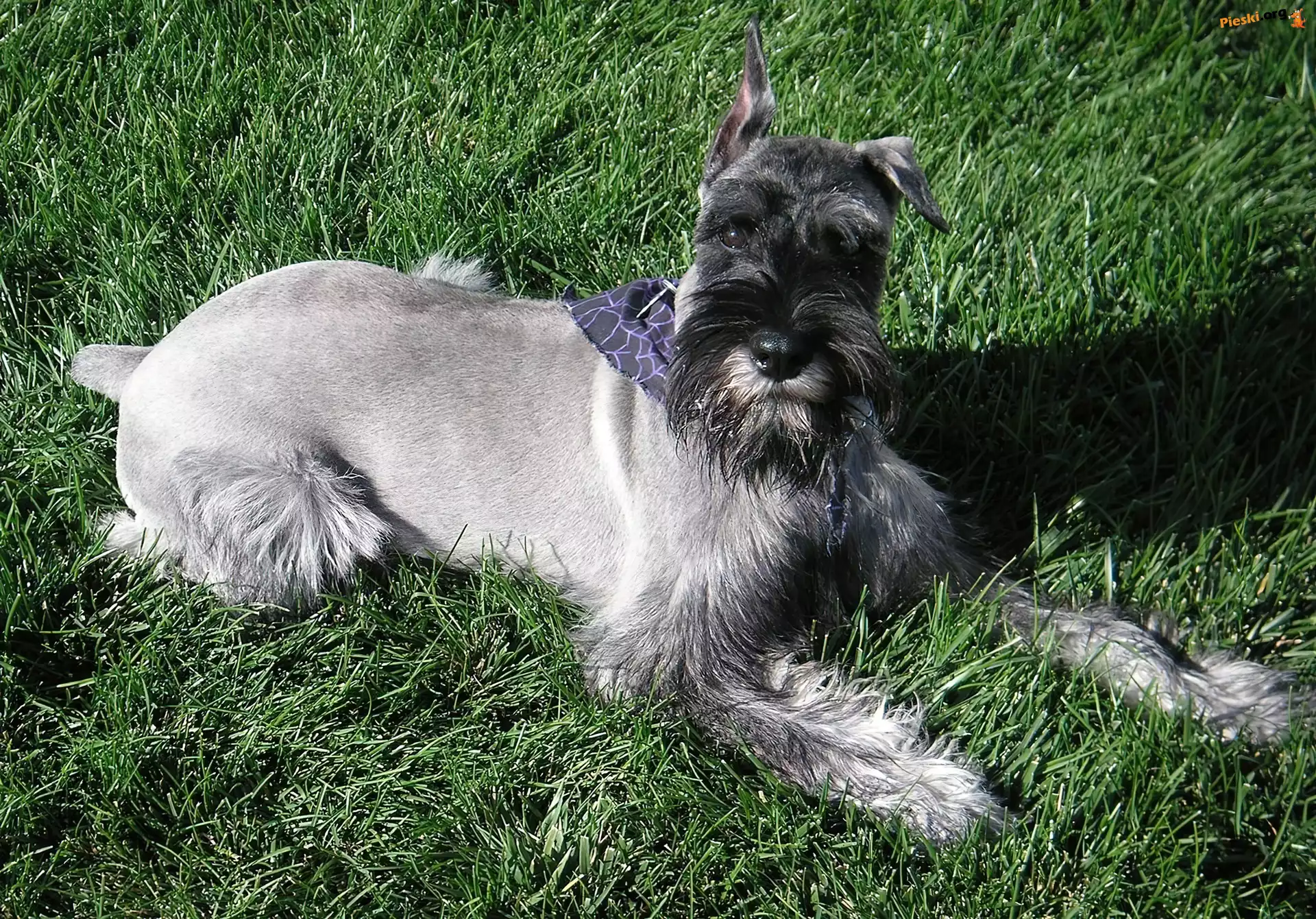 Trawa, Sznaucer, Piesek, Pieski