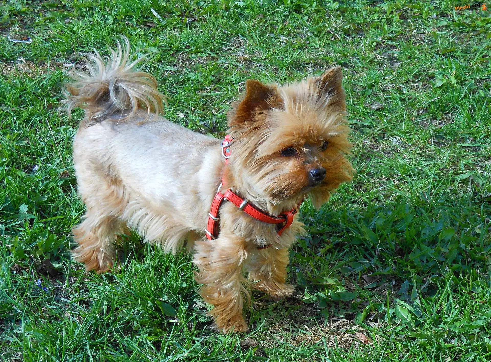 Czerwone, York, Miniaturka, Róże Mordka, Yorka, Języczek Psy, York, Ubranka Pies, Yorkshire Terrier, Róża Śmieszne, Pies, Ubranie, Trawa