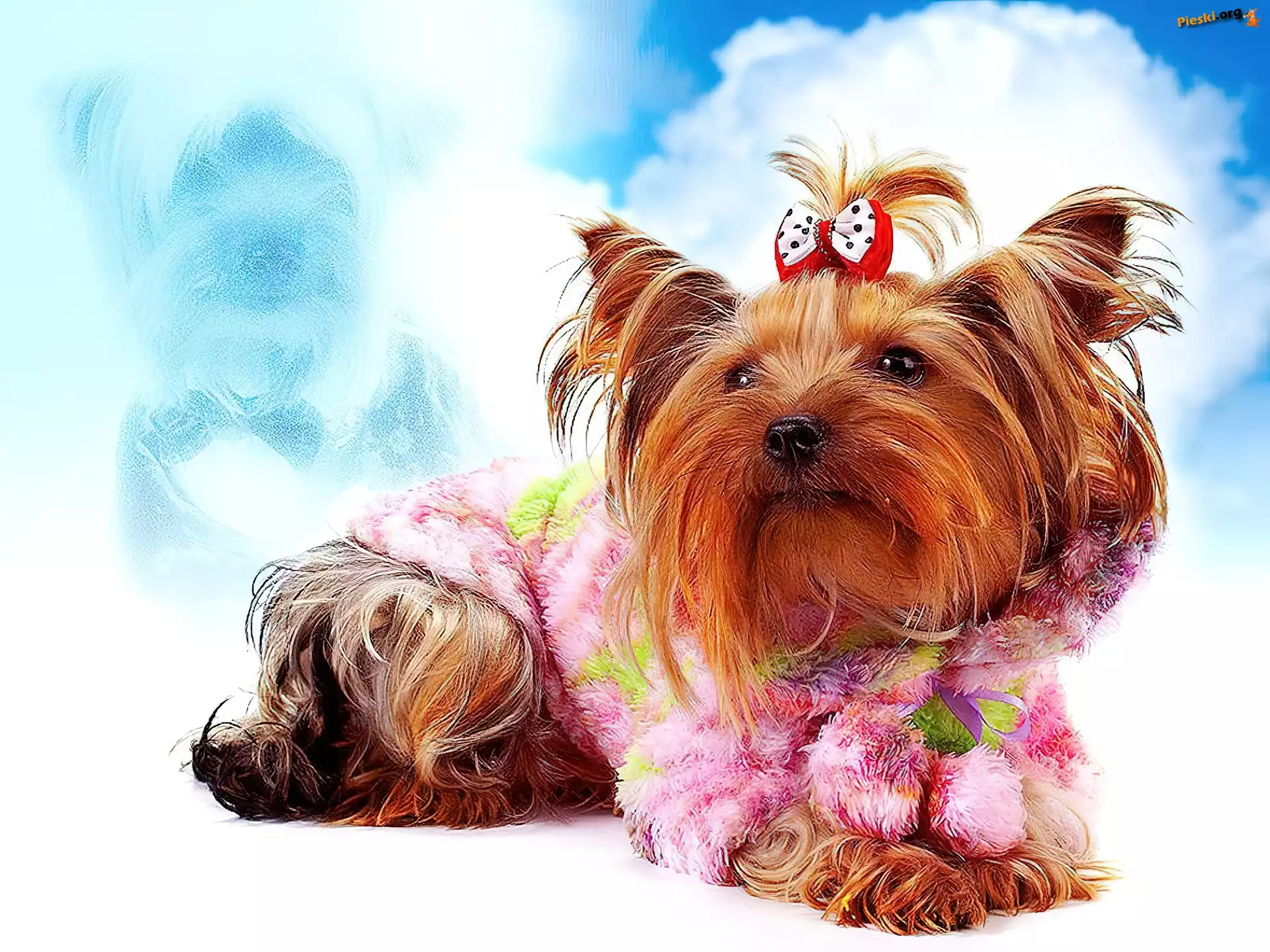 Rzeka, Yorkshire, Terier, Płynie czerwone, dwa, Yorkshire Terriery, kokardki Biały, But, Pies, Czarno, Koc Yorkshire Terrier, Długa, Sierść Trzy, Yorki Młody, York, Róże Motor, Pies, Motocyklista, Okulary, Skóra Yorkshire, Terrier, Kokardka Yorkshire Terrier,
