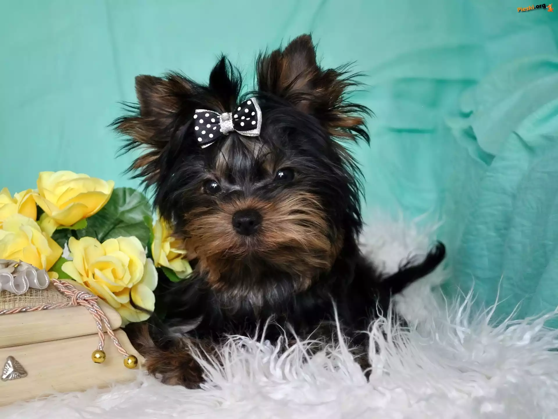 Rzeka, Yorkshire, Terier, Płynie czerwone, dwa, Yorkshire Terriery, kokardki Biały, But, Pies, Czarno, Koc Yorkshire Terrier, Długa, Sierść Trzy, Yorki Młody, York, Róże Motor, Pies, Motocyklista, Okulary, Skóra Yorkshire, Terrier, Kokardka Yorkshire Terrier,